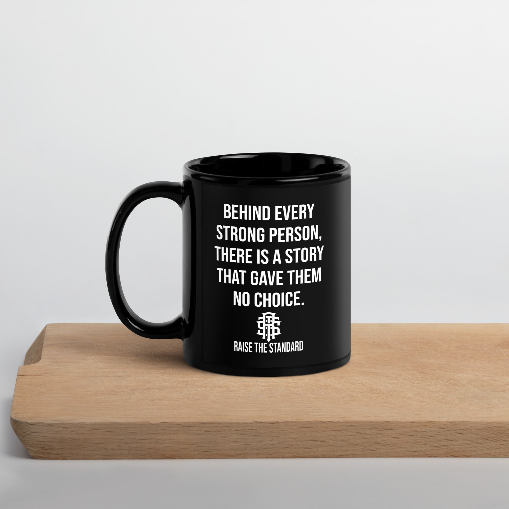 Behind Every Strong Person Black Glossy Mug - Raise The Standard Apparel